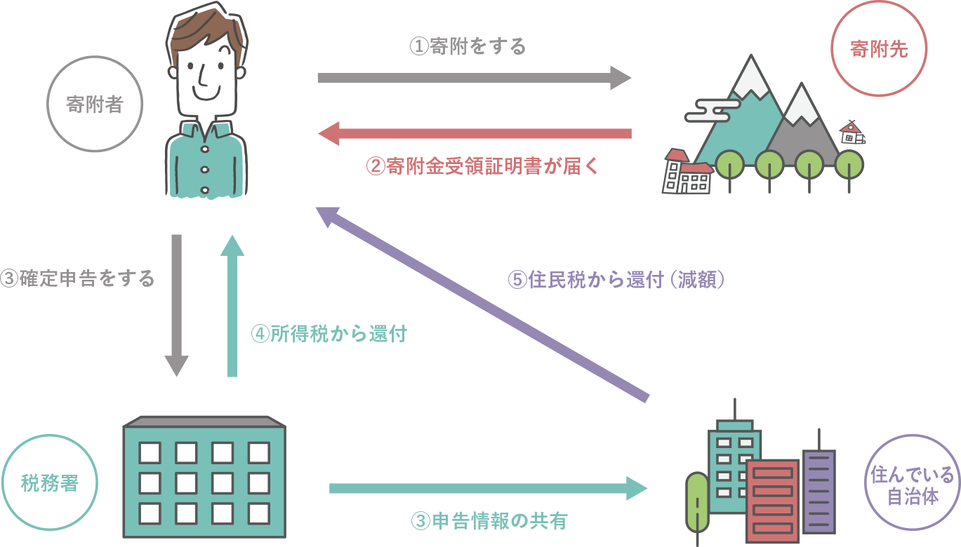 確定申告を行うと、前述の「控除額の計算」に沿って所得税と住民税の控除額がそれぞれ決まり、所得税分はその年の 所得税から控除(還付)され、住民税分は翌年度の住民税から控除(住民税の減額)されます。